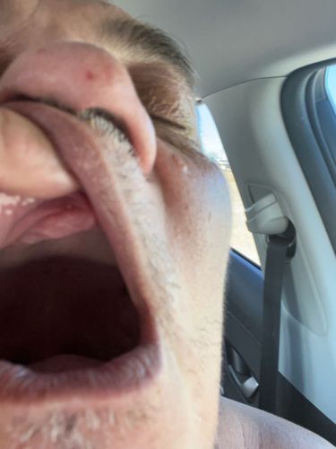 No insects are visible in the photograph; it appears to show a person's face. If you are concerned about a medical issue or an insect bite, please consult a healthcare professional.