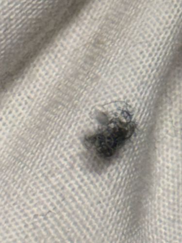 Accumulates due to friction and static electricity on textile surfaces; often mistaken for insects due to shape and color.