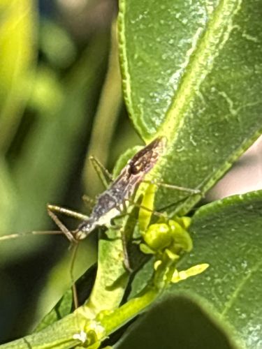 Ambush predator that uses 'sticky trap' strategy on its forelegs to catch prey; goes through incomplete metamorphosis