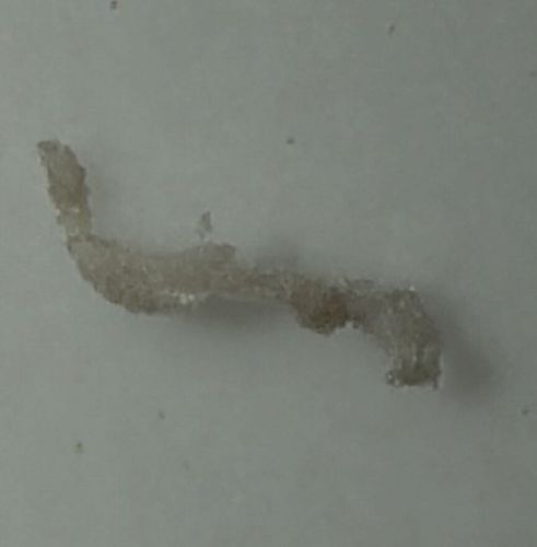 This object is non-living. It is likely a piece of dried sebaceous filament, dead skin, keratin, or dried nasal mucous that has been shed. People often mistake these harmless bodily secretions for skin parasites or 'Morgellons' fibers.
