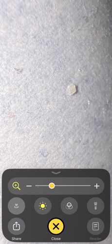 Size: Approximately 0.8 mm in length; about the size of a knot in a thread