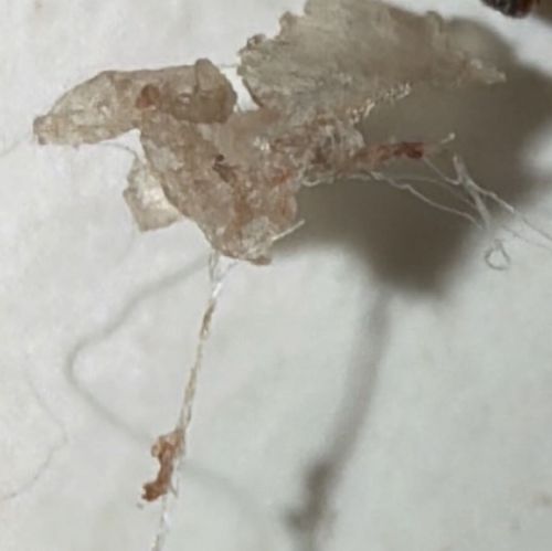 Not a recognizable insect (Likely skin flakes, scab, or dried secretion)