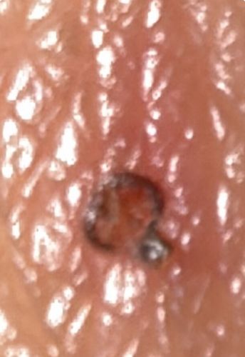 Embedded Tick (likely a Nymph or Seed Tick)