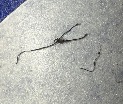 Non-living debris (likely synthetic fiber or hair)