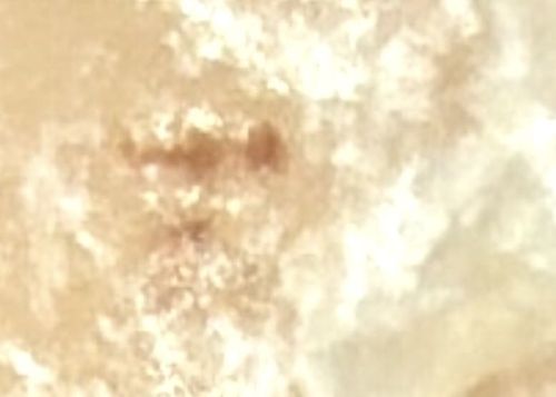 The image provided is extremely blurry and indistinct. It appears to be a close-up of a surface (possibly skin, fabric, or a counter) with a brownish smudge or blemish.