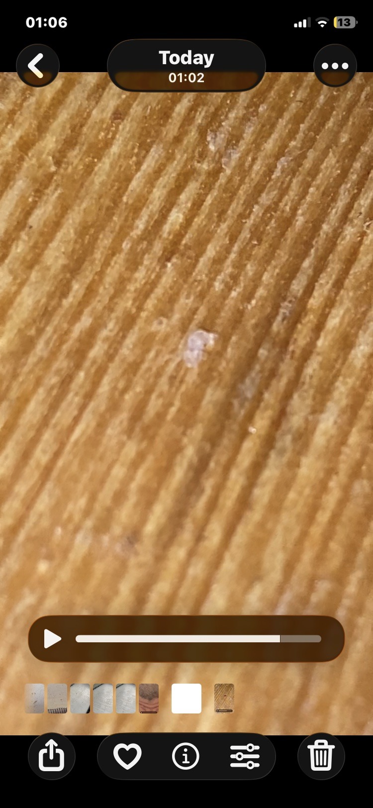Size: 0.3 - 0.5 mm (nearly microscopic, appearing as tiny white moving specks)