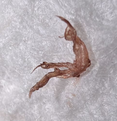 Size: Adults are approximately 2-3 mm long (about the size of a sesame seed). The specimen in the image appears to be a dried carcass or shed exoskeleton, which can distort size.
