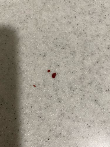 Size: Adults are 4–5 mm long; when crushed (as pictured), they appear as irregular reddish smears or small oval fragments.