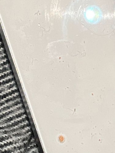 Size: 0.5 mm to 1.0 mm (very small, appears as a tiny moving speck)
