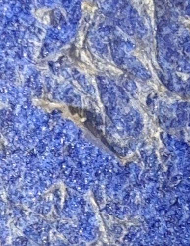 There is no identifiable insect or bug in this image. The photo appears to show a textured blue surface, possibly fabric, stone (like lapis lazuli), or a microscopic view of a fibrous material, but lacks any distinguishable biological features of an insect along the required parameters.