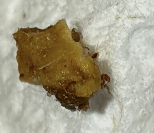 Size: Varies by amount accumulated; typically small clumps ranging from 1mm to 10mm.