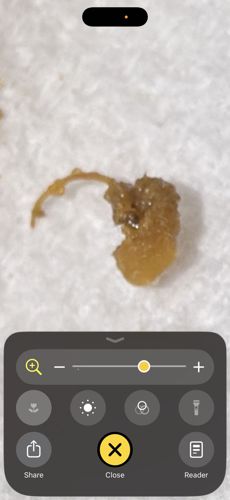 If this was found on the body or in an ear, it may represent a minor medical condition (like earwax buildup) rather than a pest issue. There are no clear biological risks or benefits identifiable from this sample.