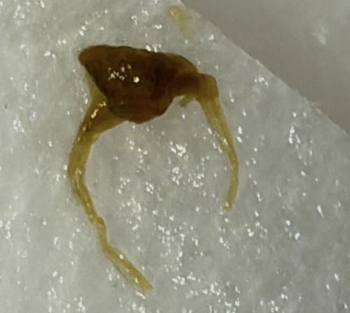 This object does not exhibit behavior. If it is earwax, it naturally migrates out of the ear canal. The 'legs' or root-like structures are typically formed by the wax drying around hairs in the ear canal before being pulled out.