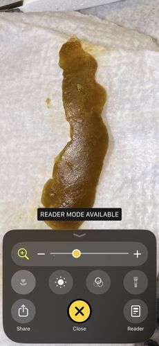The object in the image does not exhibit biological characteristics or movements associated with an insect or bug. It appears to be non-living organic matter or a viscous substance.
