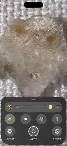The image appears to show a crystalline or fibrous structure, possibly a salt crystal, fabric lint, or mineral deposit, rather than a living insect.