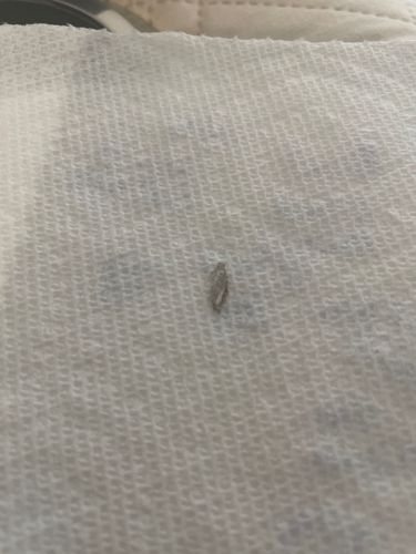 The larva constructs a flat, spindle-shaped case made of silk and covered with sand, soil, or lint. It can extend its head from either end of the case to feed or move, and eventually pupates inside the case to emerge as a small moth.