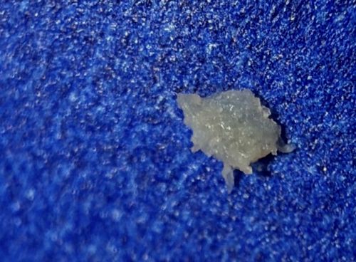 This is inanimate biological matter, often expelled from skin pores or picked from the scalp. It is frequently mistaken for a parasite or mite due to its irregular shape and the psychological sensation of 'crawling' that sometimes accompanies skin conditions.