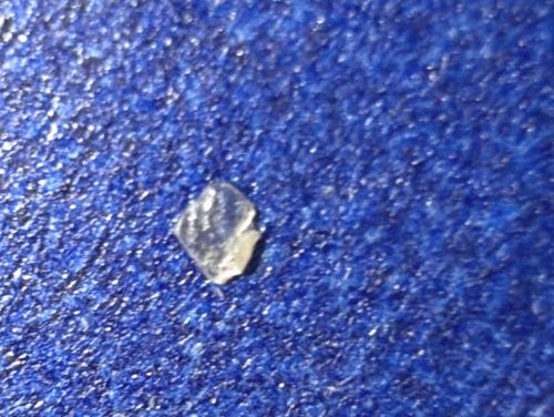 Does not exhibit behavior. This appears to be a piece of dried epidermis (skin), a small scab, or possibly a dried sebum plug/keratin plug that has fallen onto a blue surface. It lacks legs, antennae, or segmented body parts characteristic of insects.
