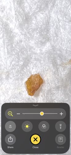 No biological risk. It appears to be a crumb, dried sap, or a piece of plant matter/debris.