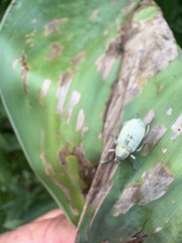 Scientific Name: Polydrusus sericeus (or related species in Polydrusus/Philopedon, given the common name often refers to multiple green weevil species, but P. sericeus is a strong candidate given the appearance and prevalence of 'Green Immigrant Leaf Weevil' in various regions)