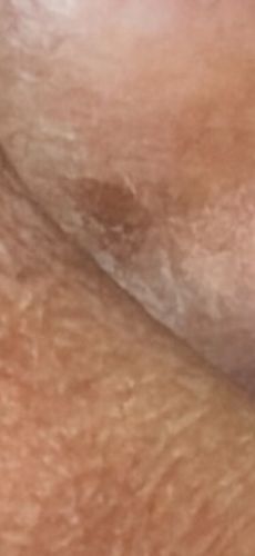 The provided image does not appear to contain a bug or insect. It looks like a close-up, blurry photograph of skin texture, possibly showing a rash, irritation, or fold of skin. No identifying features of an insect are visible.