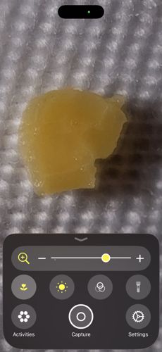 No biological risk or benefit; the object appears to be a piece of food, resin, or biological byproduct like earwax rather than an insect