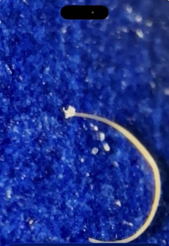 Hair grows in cycles (anagen, catagen, telogen) and naturally sheds. The white bulb visible at one end is likely the root sheath, indicating the hair was pulled or shed during the growth cycle.