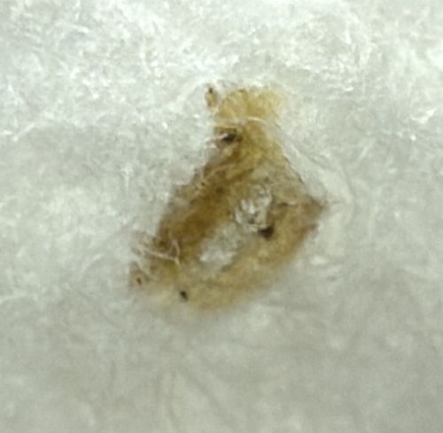 Larvae feed on old spider webs, silk, wool, human hair, pet fur, dead insect parts, and sometimes fibers from clothing or carpets.
