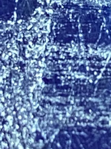 The image appears to show a highly textured, blue-tinted surface, possibly frost, ice, or a coarse textile.