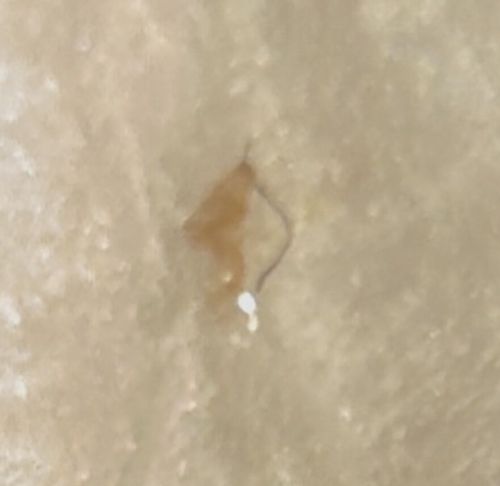 Exclusively inhabits coarse human body hair, primarily in the pubic region, but can also be found in eyelashes, eyebrows, beard hair, and armpit hair.