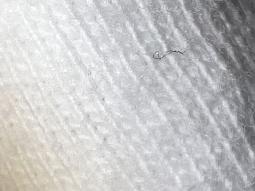 Accumulates in household dust due to friction on clothing or upholstery; often mistaken for small worms or insects due to its curled shape.