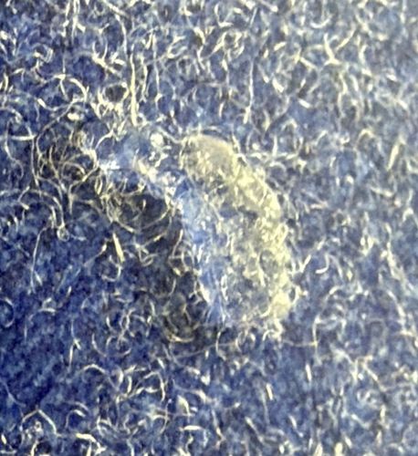 Adult flea excrement (flea dirt, which is partially digested blood), dandruff, and other organic debris.