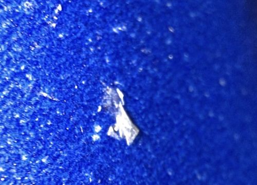 Does not exhibit behavior. It is likely a piece of reflective material like aluminum foil, glitter, or a paint chip resting on a blue surface.