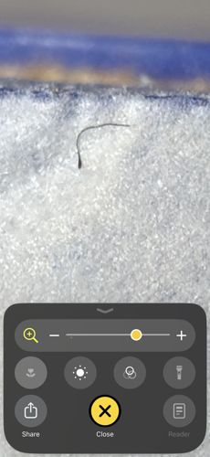 Human coarse body hair, most notably pubic hair, but also eyelashes, eyebrows, beard, and armpits