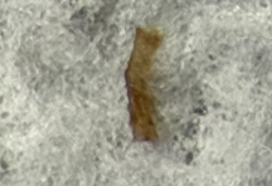 Dried Insect Larva or Skin (likely Carpet Beetle Larva or moth larva)