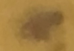 Unidentifiable due to image quality (Possible debris or fluid)