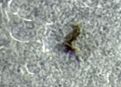 Unknown biological debris/detritus (potentially an insect fragment or plant fiber)