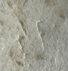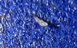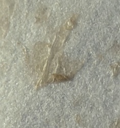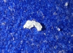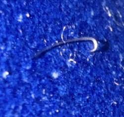 Non-living debris (likely synthetic fiber or hair)