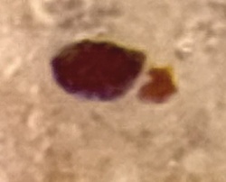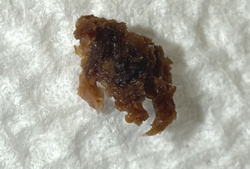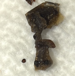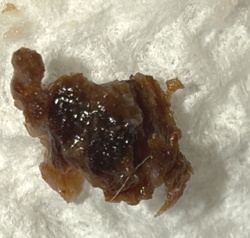 Unidentifiable organic debris (Likely crushed insect or earwax/debris)