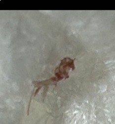 Not a recognizable insect (Likely skin debris, scab, or fiber)